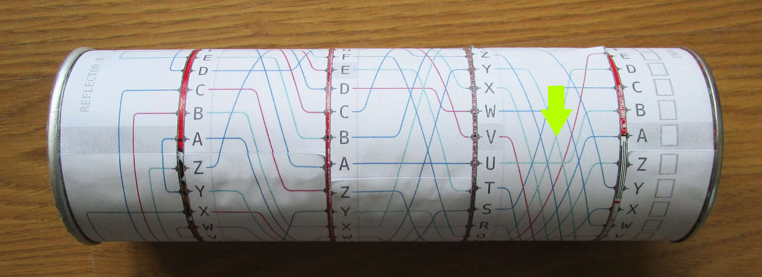 De letter van het Enigma bericht kun je dan nog gewoon decoderen zoals hierboven