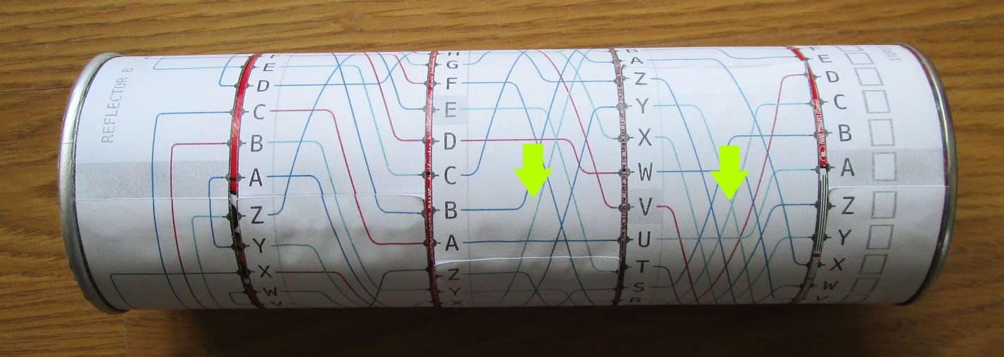 De rotors hebben ieder bij één letter een grijs vlakje, op een gegeven moment zal