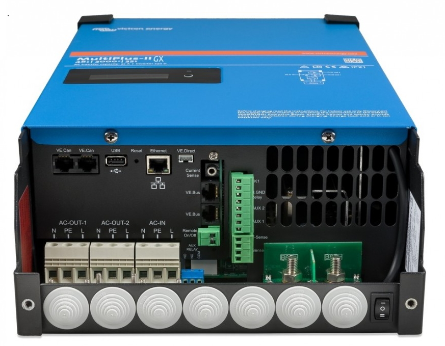 De Victron Multiplus II is een combinatie van acculader en omvormer.