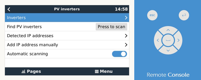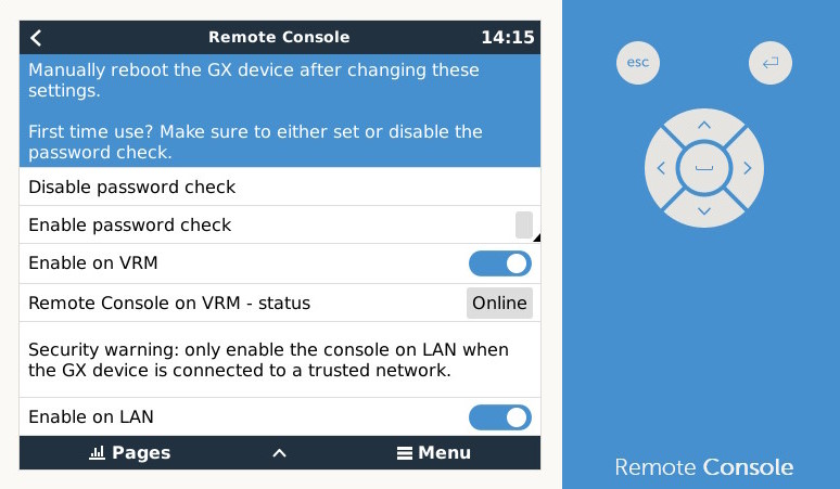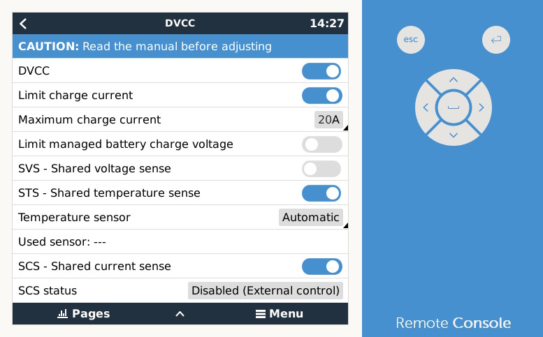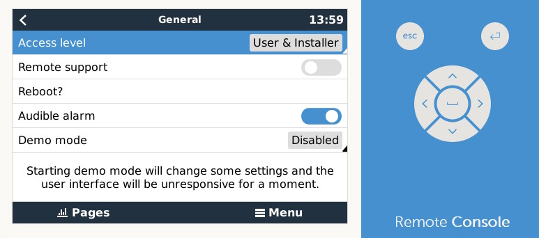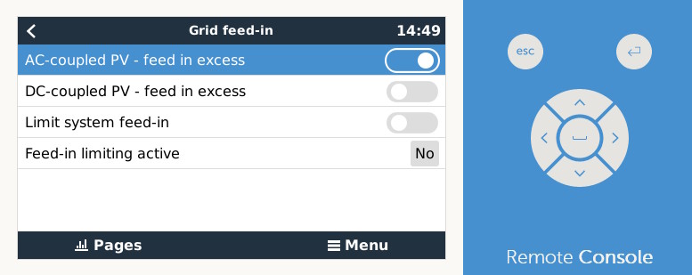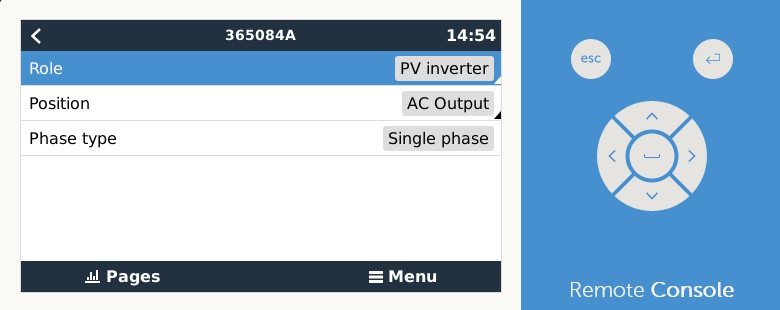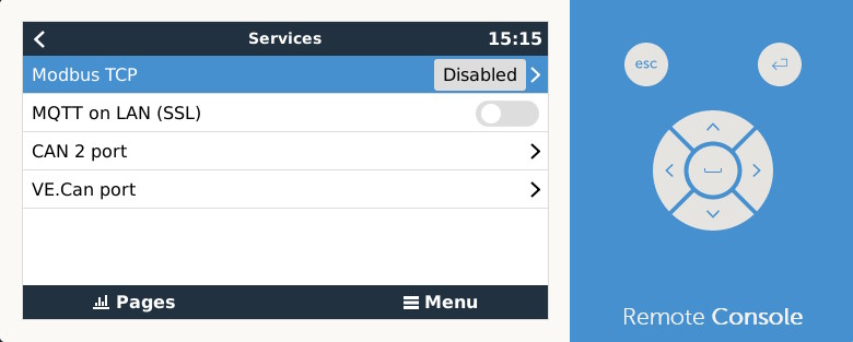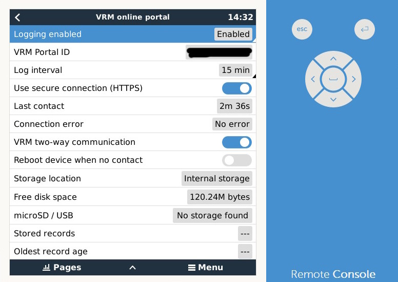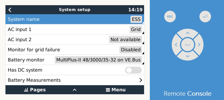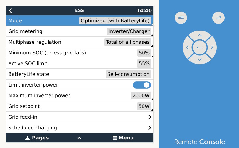 Hieronder de Remote Console instellingen zoals ik ze gebruik in het Energy Storage System