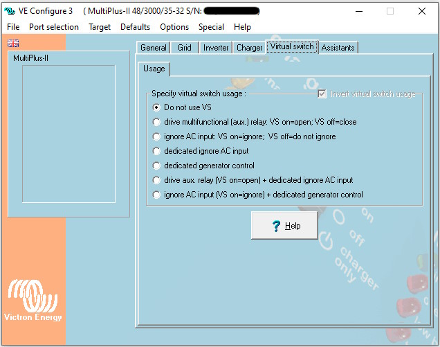 Met virtual switch kun je een relais in de Multiplus II sluiten en openen bij