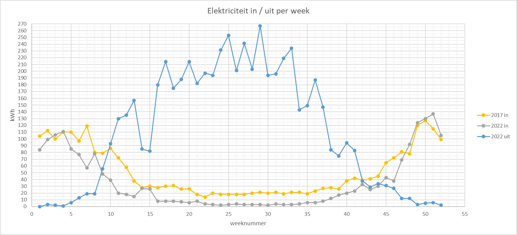 Tevens is voor het jaar 2022 de aan het lichtnet terug geleverde stroom in de grafiek