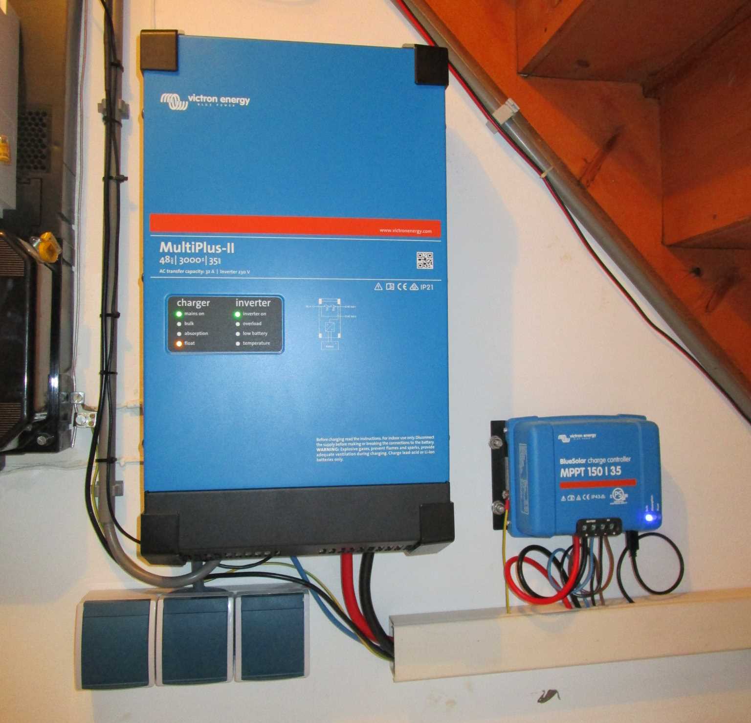 Afbeelding 3: De Multiplus II met daaronder de stopcontacten die onder spanning