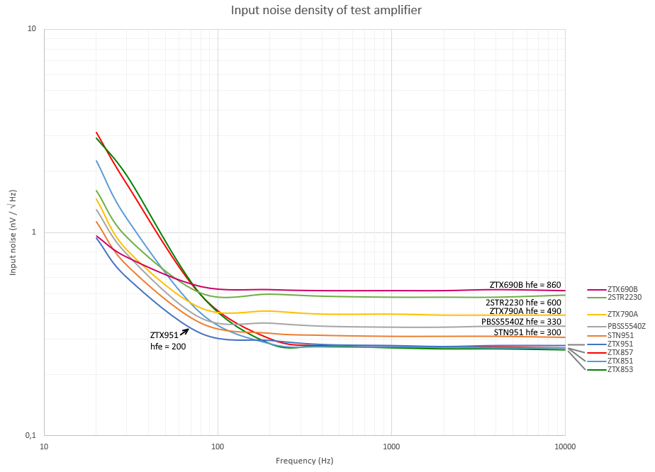These transistors are the lowest noise types measured for a certain hfe value.