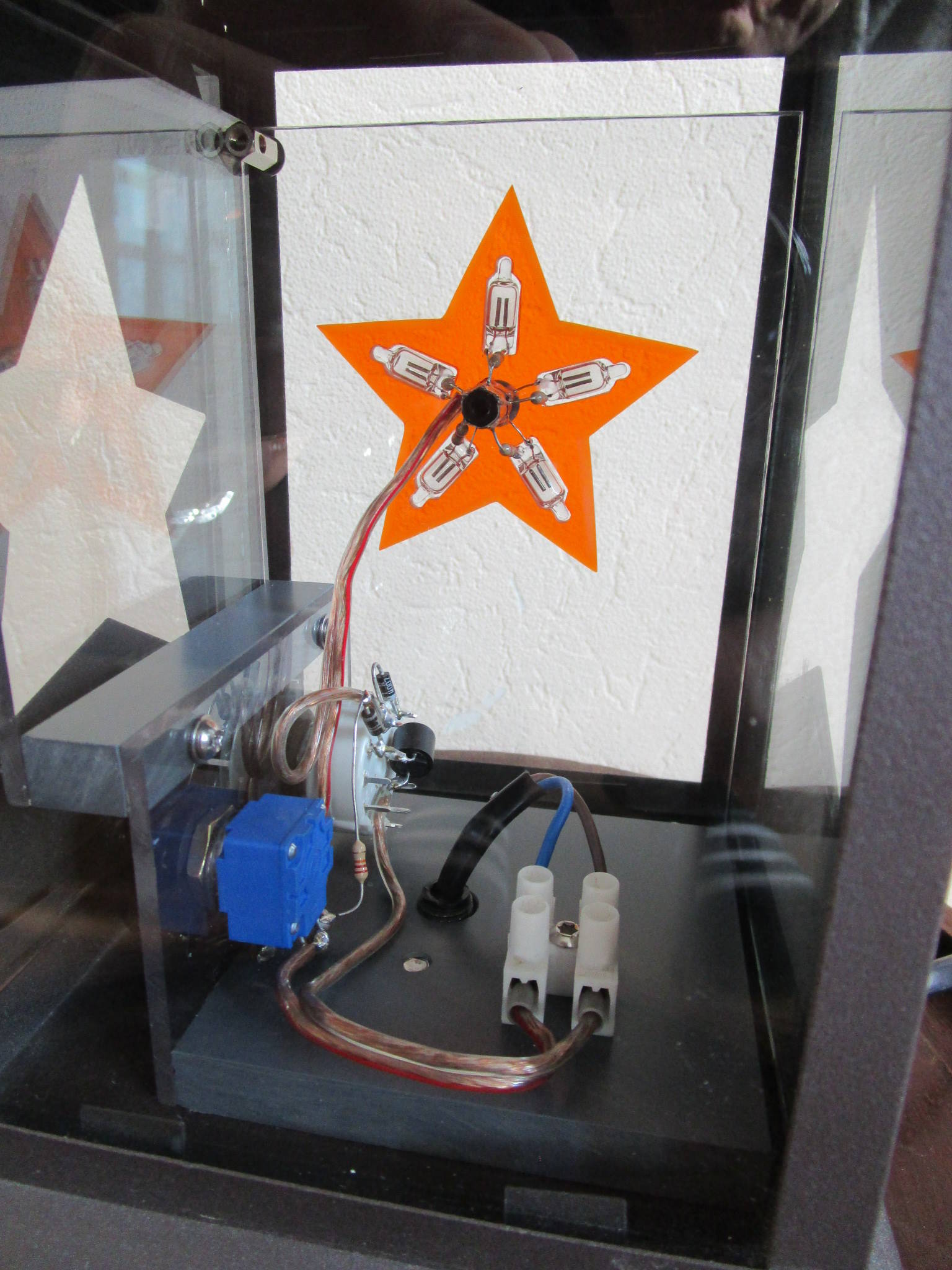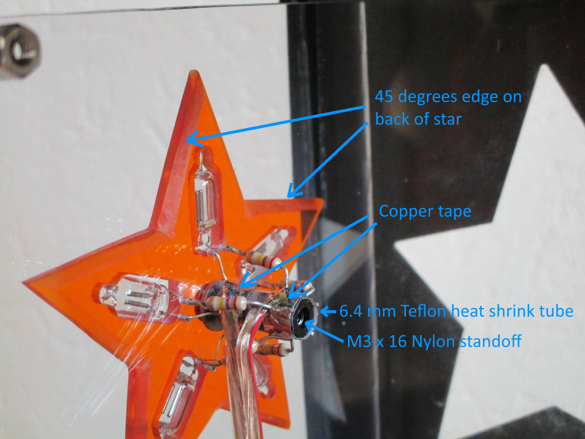 On the backside of the Plexiglas star a 45 degrees edge is made, which reflects