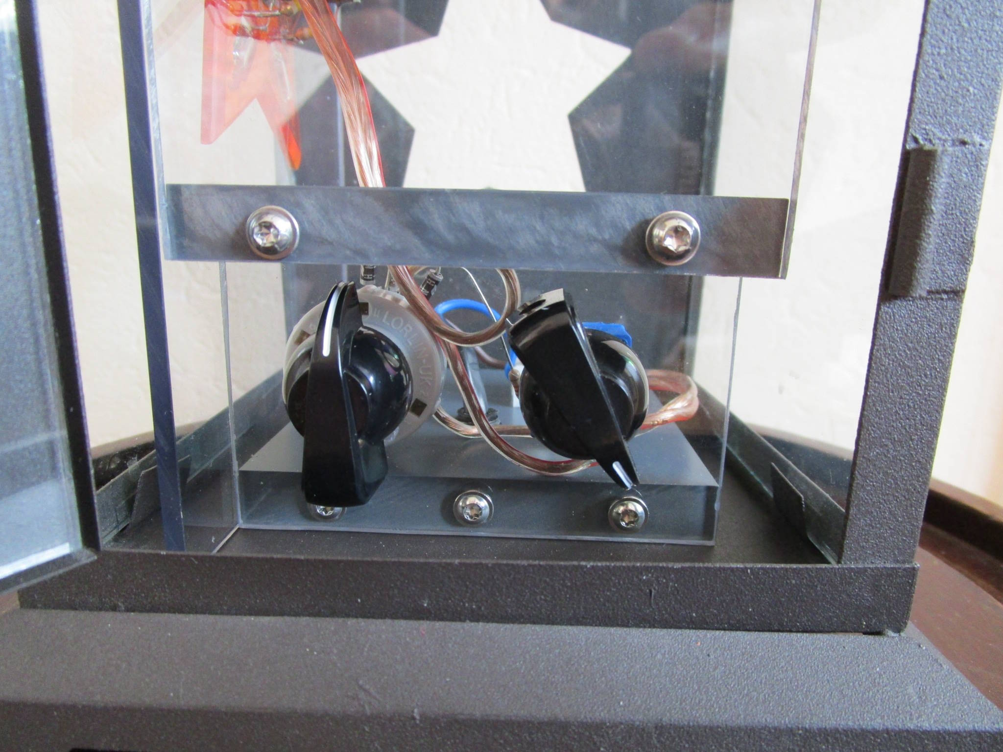 The control knobs of the lamp, on the left side the 3 position switch, on the