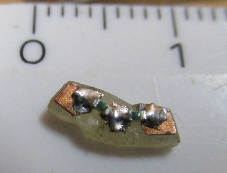Figure 4: the small board with the two resistors mounted.