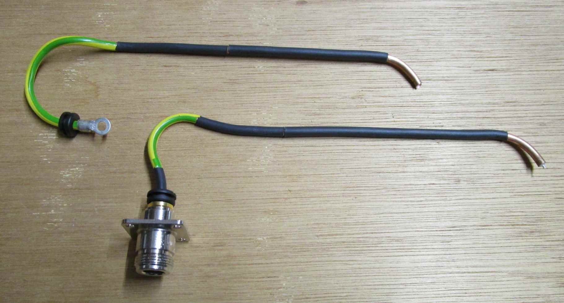 The bend at the right side of the coax is not yet insulated as can be seen in