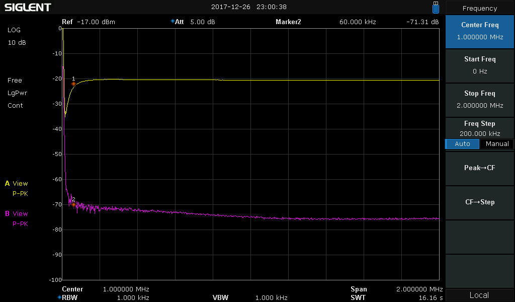 The two markers are set to 60 kHz, at that frequency the reference trace has